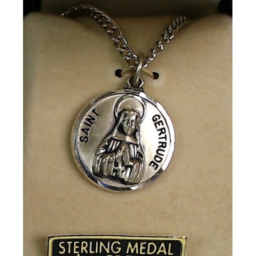 St Gertrude Medal with chain Sterling Silver