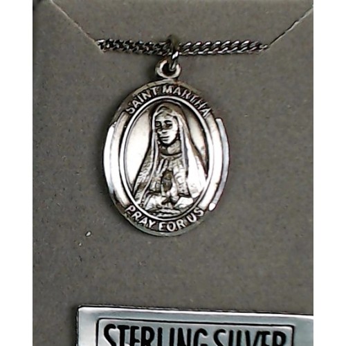 St Martha Medal with chain Sterling Silver Fine Chain