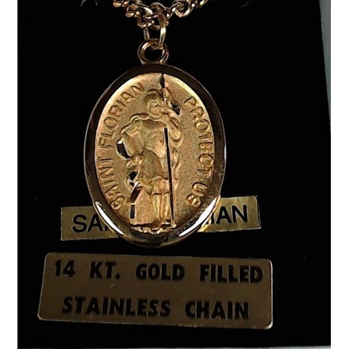 St Florian Medal with chain 14 KT. Gold filled, stainless chain