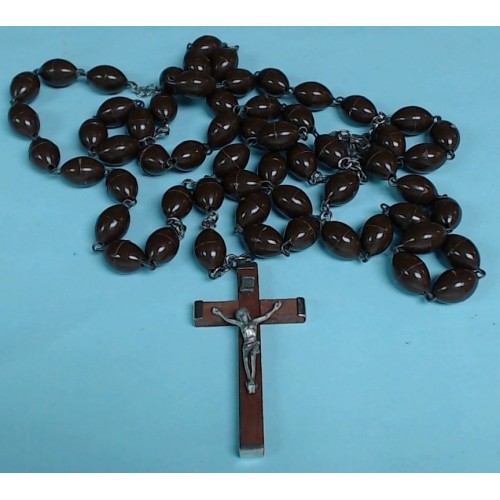 Rosary Large Brown plastic beads. Rosary is 31 1/2" long, wood cross